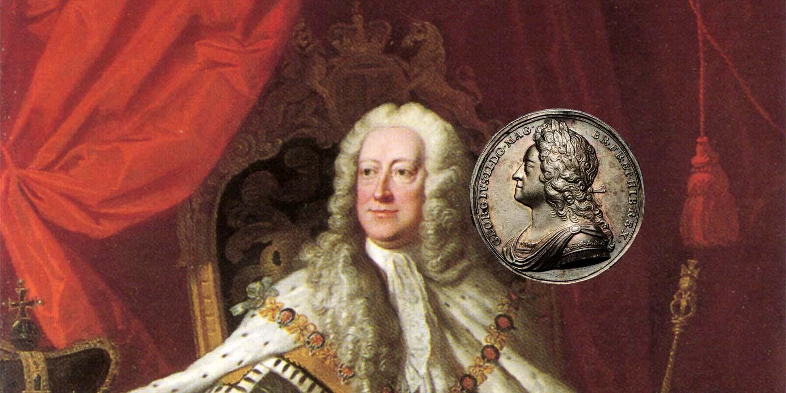 Three main types appear on the coinage of George II. Roses – silver from the mines in the West of England. Plumes – silver from the Welsh Copper Company. Roses and Plumes – silver from the Pitcoale and Seacoale company.