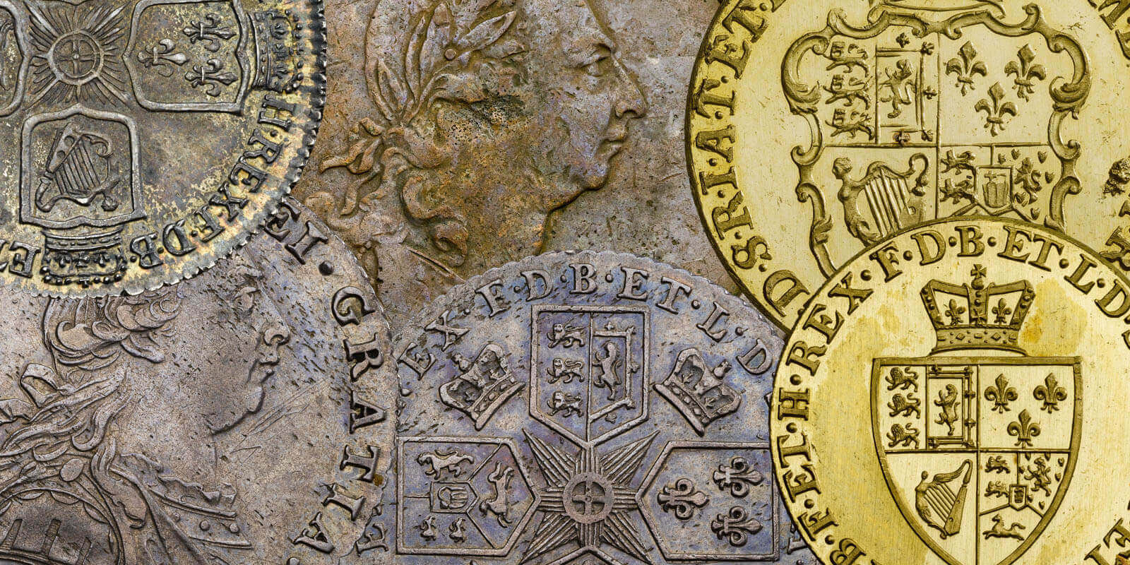 The reign of George III saw great loss and great gains in terms of coinage. While gold coins were struck regularly, first as guineas and finally with the introduction of the modern sovereign in 1817, silver and copper coins were comparatively rarer. The absence of silver coinage in the early part of the reign eventually led to the Bank of England issuing countermarked Spanish silver coins to meet demand. The few copper coins struck for small change led to an influx of unofficial token coinages created by private business owners, and ultimately to Matthew Boulton being awarded a contract to strike what would become known as the Cartwheel Penny. This reign showcased the work of some of the Mint’s best known engravers, such as Lewis Pingo, Thomas Wyon, and Benedetto Pistrucci – not surprising, given that George III has perhaps more different coinage portraits than any other British monarch.